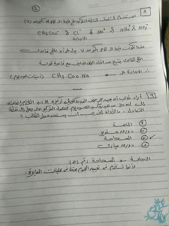 وهذا هو تسريب إمتحان الكيمياء أولى ثانوي 2019 واجابة امتحان الكيمياء اولي ثانوي 2019
